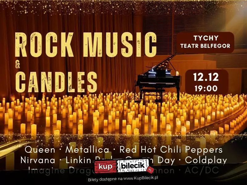 Magiczny koncert przy świetle tysiąca świec, podczas którego legendarne rockowe utwory zabrzmią w wykonaniu "Piano&Cello". Czekają na Ciebie najsłynniejsze przeboje muzycznych gigantów, takich jak: Queen, Metallica, Nirvana, Linkin Park, AC/DC, Green Day, Imagine Dragons, Red Hot Chili Peppers, John Lennon i inni.